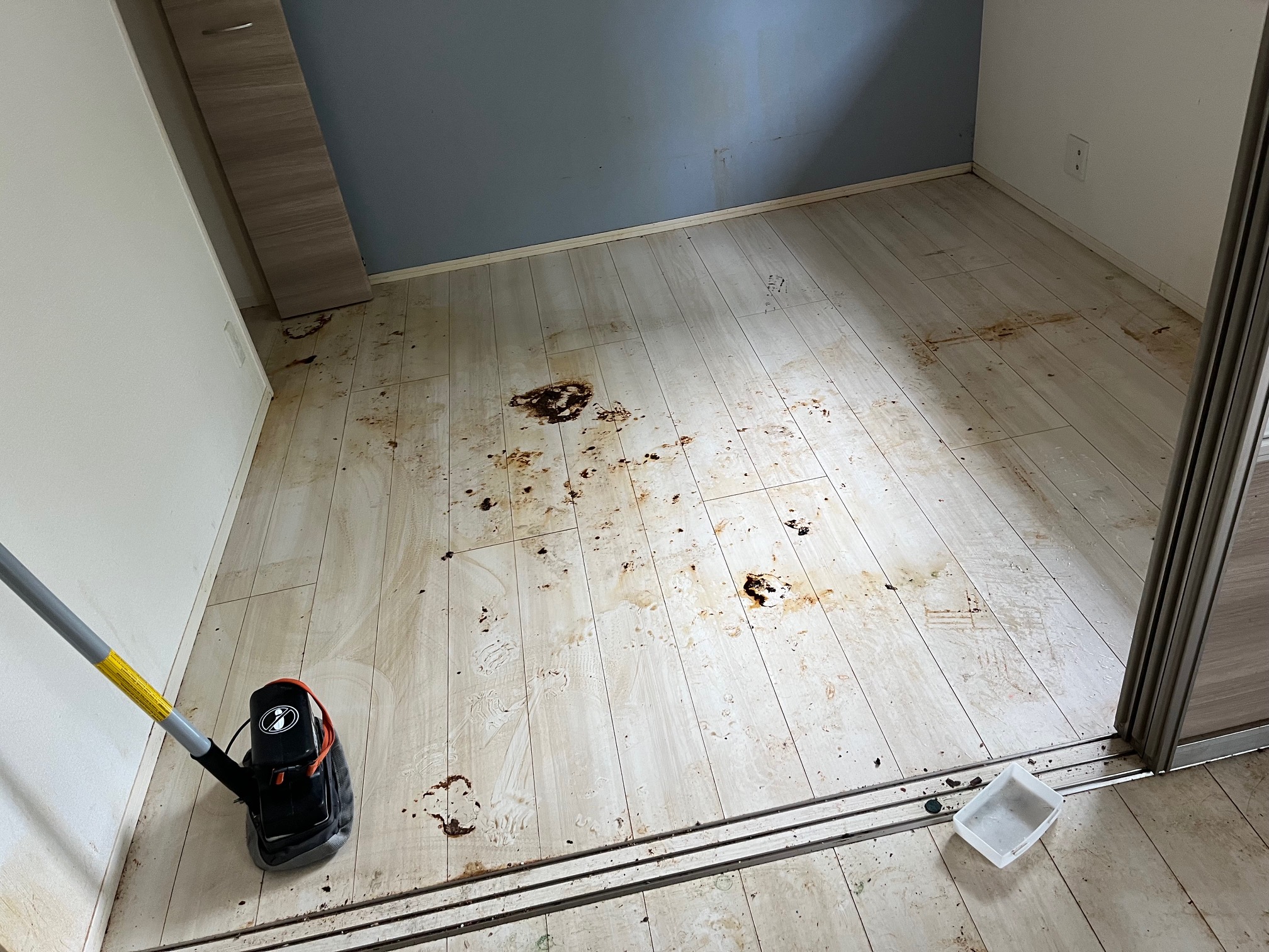 マンションで犬を放置したまま夜逃げをした現場です。犬の糞尿の臭い取りとクリーニングのご依頼です。 臭いも汚れも綺麗に取れ、次の方も気持ちよく入居できると思います。
